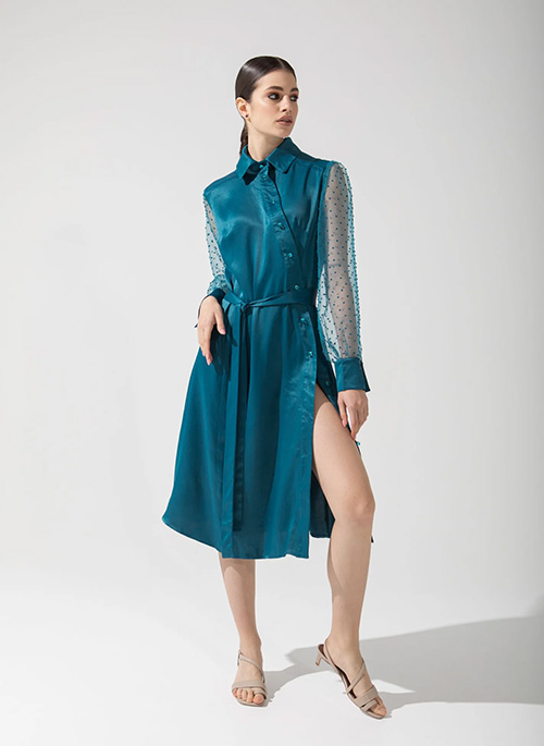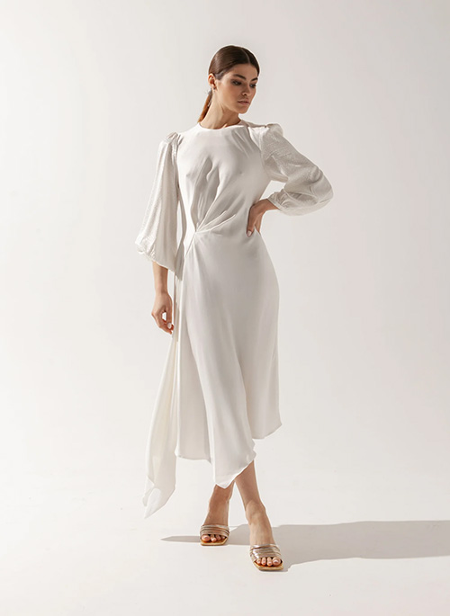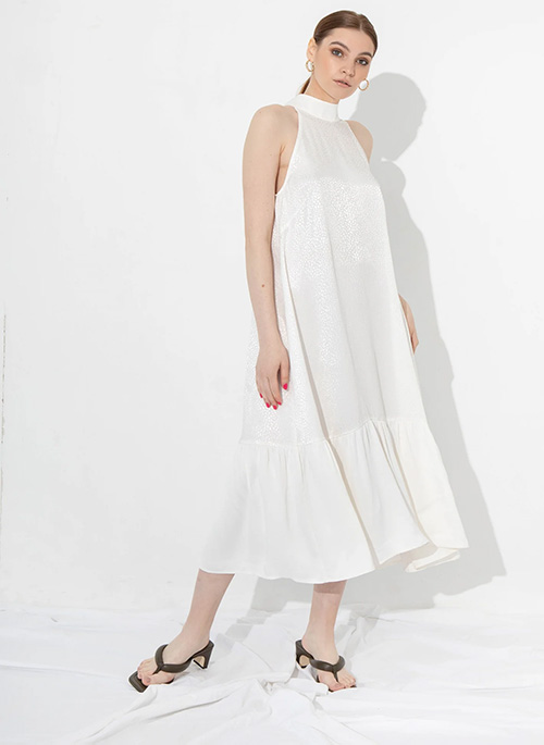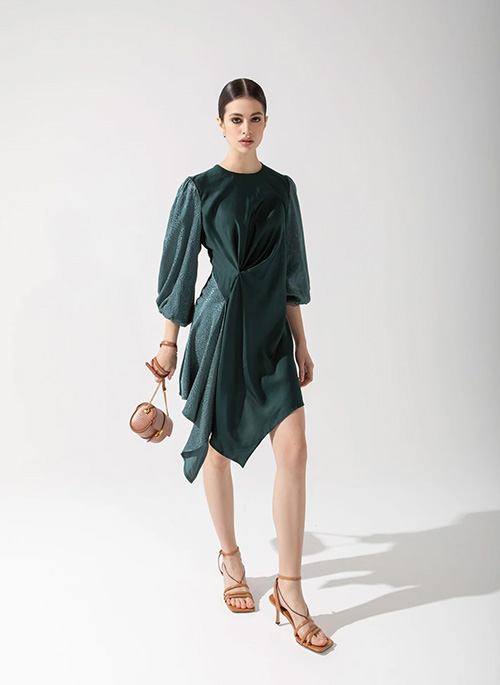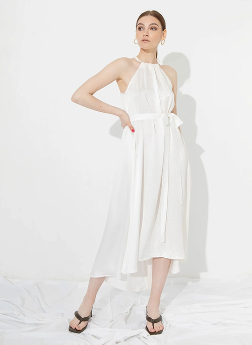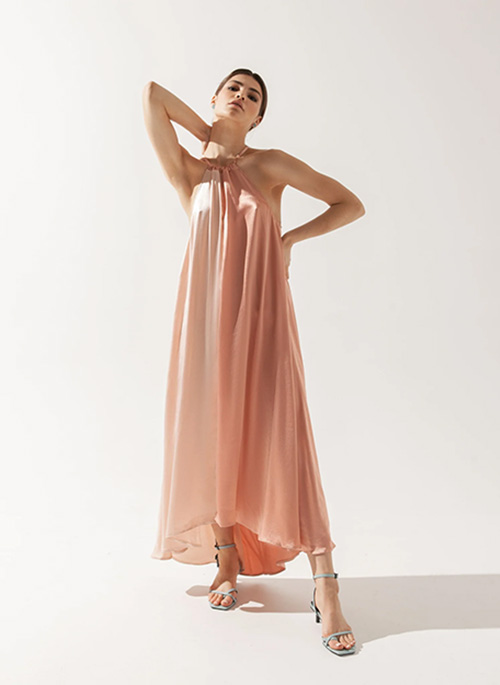 Her short dresses have become the most popular examples of this ethic, made of natural viscose satin fabric for a soft gentle touch of the body, feeling as good as their luxurious silky appearance to the eye of admirers. They have also proven to be durable, easily washable, and lasting for many seasons thus encouraging moving to a more sustainable lifestyle.