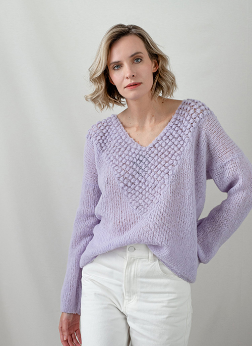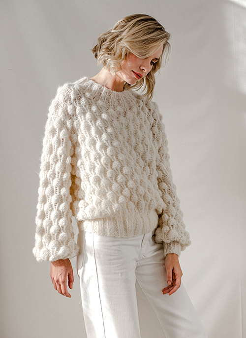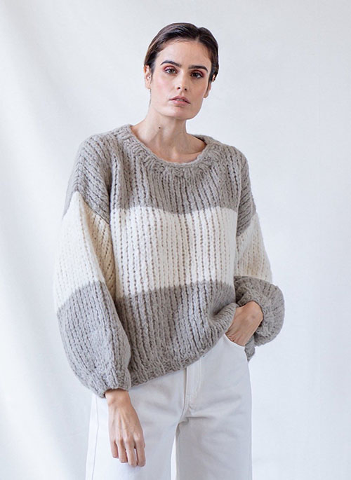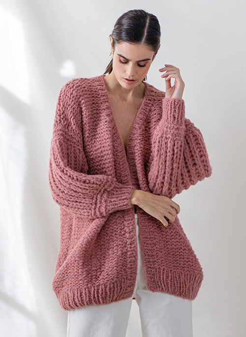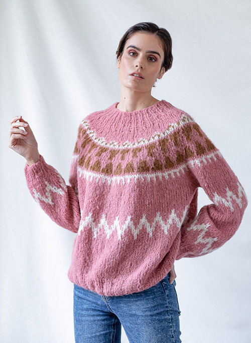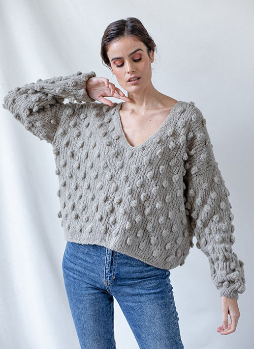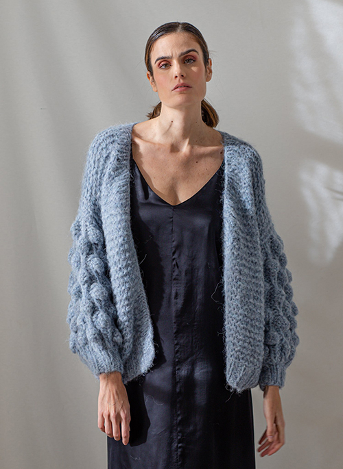 The result are hand knitted pieces made with a lot of care and love by our team, who have inherited the thousand-year-old hand knitting tradition and keep learning how to apply these knowledges to our designs. The result is ethical, feminine and unique pieces.