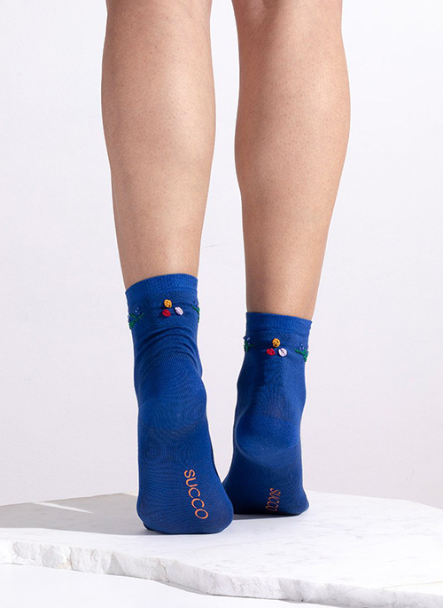 SUCCO renews the tradition of handmade embroidery and honors its timeless beauty in the modern world. Decorative stitches originated from Greek folk art such as puffed-up, rococo, cruciate, and fishbone, along with real crystals, embellish best quality cashmere and cotton socks in distinctive artworks.