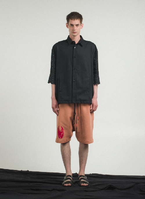 A pale view of land stretches far, set firmly in place across the horizon with the unyielding certainty of the past. Coarse and eerie, this is the place where ZSIGMOND menswear emerged in 2014. Having grown up in rural Hungary, the designer, Dora traces the shape of this landscape and its people in each of her creations. Through her REMADE line of sustainable garments, the quiet force of Hungarian folklore lives on in repurposed, plant-dyed fabrics, some almost a century old. With each collection, the application of traditional craft techniques and timeworn fabrics carries the past into the future: this is how Dora preserves rural traditions in an urban world. Modern, industrial silhouettes are met with handcrafted details, and the fragile beauty of embroidery, latch hooking, macramé, knitting, and plant-dying are transformed into something more visceral. Stories are told through fabrics as resilient as our heritage: waxed cotton, organic linen, tapestry, double gauze, ramie, PE fabrics recycled from PET bottles, 60-year-old hand-woven canvasses.