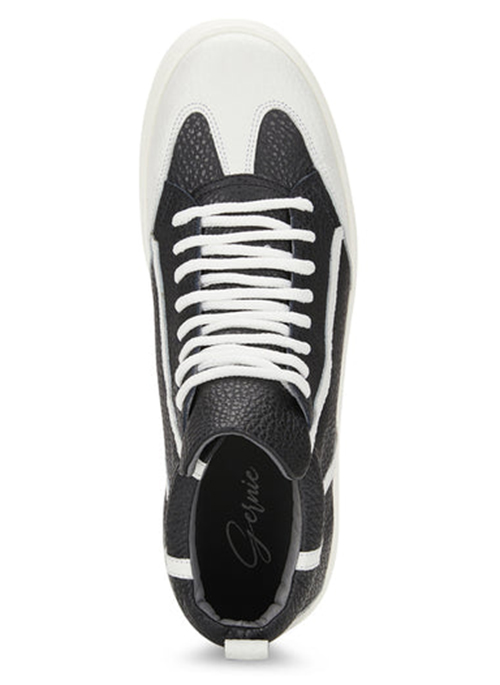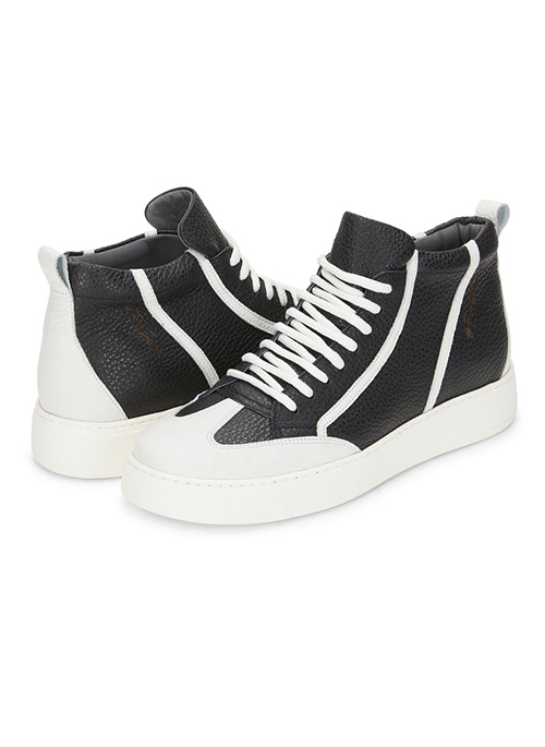 Our premium 18's high-top sneakers are handcrafted in black & white Garda leather. Popular for their ability to adapt to any season or personal style, our 18 Collection features padded and removable footbeds, adjustable laces, and treaded rubber soles for excellent traction. A must-have with a casual vibe, our high sneaker is designed in New York City and precisely stitched by skilled artisans in Brazil.