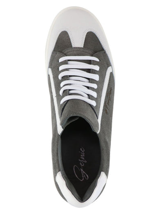 This everyday sneaker is a stylish two-tone low shoe that will immediately upgrade any fashionable man's wardrobe. The designer low style combines contemporary fashion and classic appeal for a well-rounded wardrobe. Featuring a genuine suede calf leather upper and fully lined in fine kid Napa calf leather, these luxury sneakers have a 3/4 inch sole elevation. Product Fit: Runs true to size.