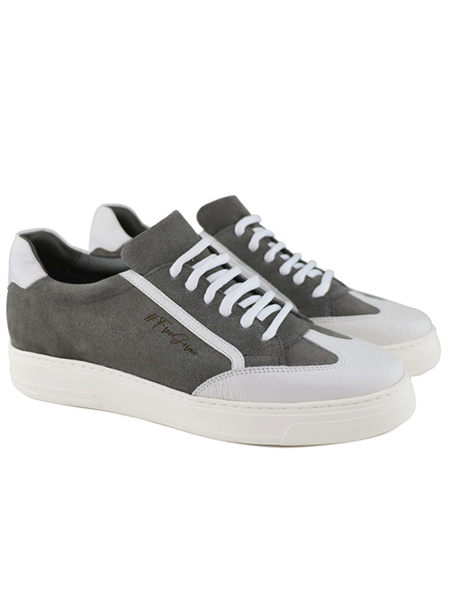 These 18's are men's low top leather sneakers handcrafted in grey suede and accented with fine white Italian garda leather trim. Known for their overall softness and comfort, our luxurious 18 Collection shoes feature padded and removable footbeds, adjustable laces, and treaded rubber soles for excellent traction. Sophisticated with a casual vibe, our low sneaker is designed in New York City and precisely stitched by skilled artisans in Brazil.
