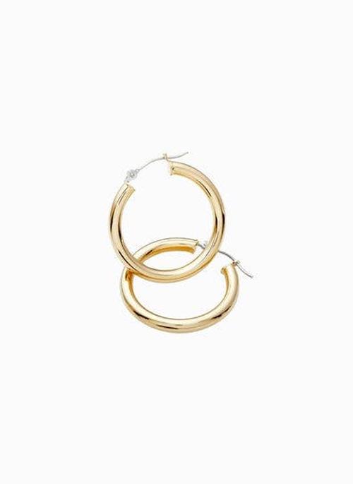 These perfectly sized yellow gold hoops are sure to elevate any look. Mark our words.
