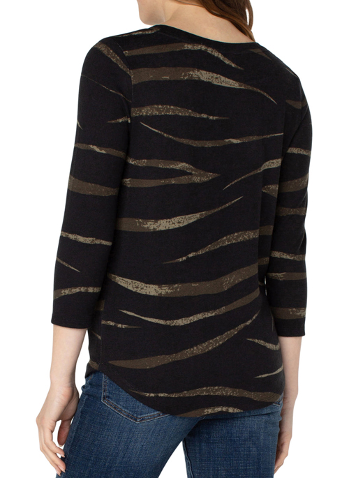 The perfect printed 3/4 sleeve tee in our abstract animal print! Made of extra soft hacci material so this top is super comfortable and easy to layer. The rounded hem finish gives you the option to front tuck or let the hem out.