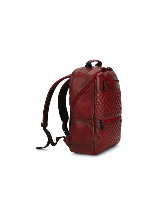 Our premium 52's red grainy leather carrier is a classic backpack made from genuine Garda leather with unique quilted details. This luxury backpack is a stylish bag that features adjustable padded straps for optimal comfort, convenient dual zipper closure for the main compartment, and multiple interior pockets for all those extras. This bookbag features 2 convenient small front compartments that will securely hold a tablet or iPad. A durable top handle makes the backpack easy to grab and lift regardless of what you're carrying in it.