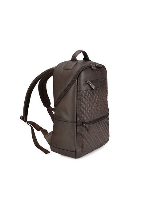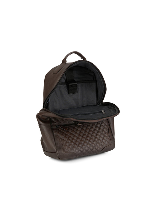 Our premium 52's brown grainy leather carrier is a classic backpack made from genuine Garda leather with unique quilted details. This luxury backpack is a stylish bag that features adjustable padded straps for optimal comfort, convenient dual zipper closure for the main compartment, and multiple interior pockets for all those extras. This bookbag features 2 convenient small front compartments that will securely hold a tablet or iPad. A durable top handle makes the backpack easy to grab and lift regardless of what you're carrying in it.