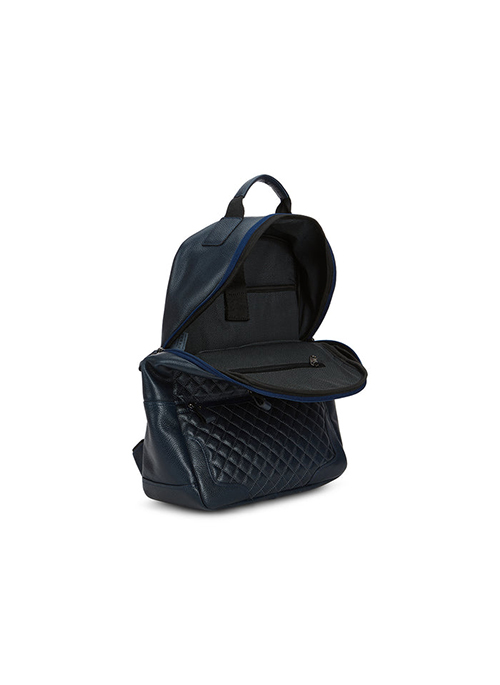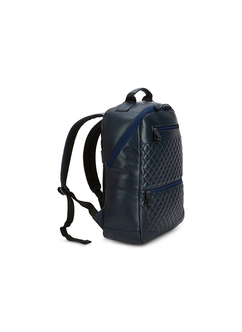 Our premium 52's navy grainy leather carrier is a classic backpack made from genuine Garda leather with unique quilted details. This luxury backpack is a stylish bag that features adjustable padded straps for optimal comfort, convenient dual zipper closure for the main compartment, and multiple interior pockets for all those extras. This bookbag features 2 convenient small front compartments that will securely hold a tablet or iPad. A durable top handle makes the backpack easy to grab and lift regardless of what you're carrying in it.