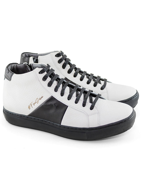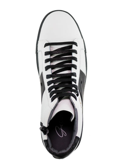 The men's two-tone 613's high-top sneakers are crafted with premium Garda leather. This classic high sneaker style features a padded and removable footbed, adjustable laces, & inside zipper for easy foot entry. Known for their exceptional look and luxurious feel, our timeless 613 Collection of shoes combines sophistication with a casual vibe, making each pair suitable for all occasions and dress codes. Our hi-top sneaker is designed in New York City and precisely stitched by skilled artisans in Brazil.