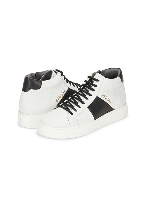 The men's 613's high-top sneakers are crafted with premium Garda leather. This classic high sneaker style features a padded and removable footbed, adjustable laces, & inside zipper for easy foot entry. Known for their exceptional look and luxurious feel, our timeless 613 Collection of shoes combines sophistication with a casual vibe, making each pair suitable for all occasions and dress codes. Our hi-top sneaker is designed in New York City and precisely stitched by skilled artisans in Brazil.