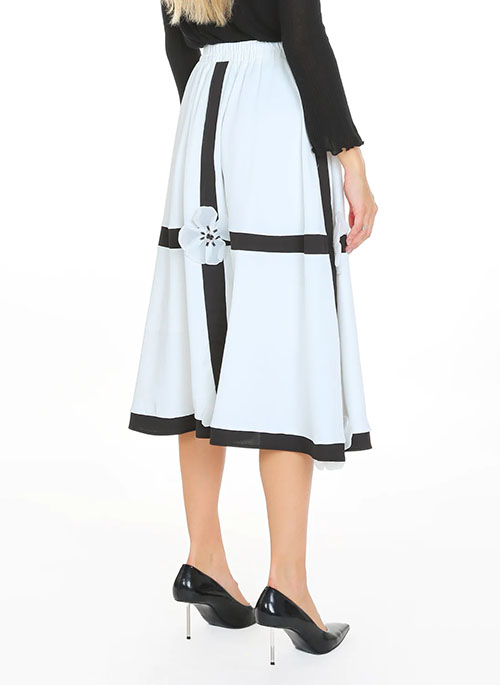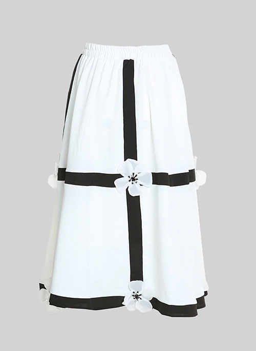 Details: Color blocked A Line Flower trim attached Elastic waist Regular fit Imported