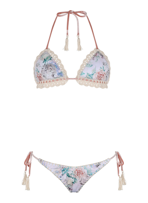 Your go-to bikini. Acacia Botanic Green is one of the favorite triangle bikini because of her adjustability, versatility, and flattering shape. This bikini comes with a reversible peach velvet print and straps that tie around the neck and back to give you a custom fit.