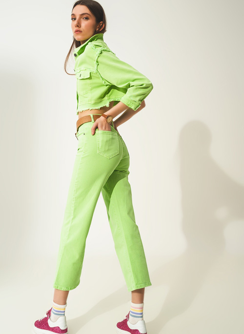 NEW CROPPED WIDE LEG JEANS IN ACID GREEN