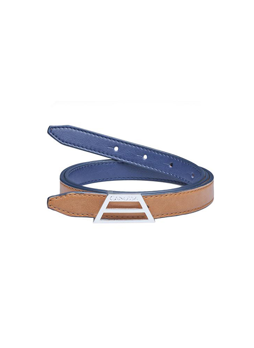 This belt is the peak of style and function. With a reversible buckle, it allows you to display blue or camel, depending on the occasion.
