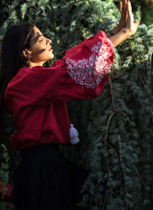 You can be your own designer of your garment. Imagine your own outfit. All you have to do is choose the colour of your linen, your threads, and your patterns to complete the custom order.Details: