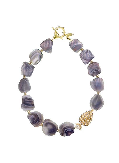 This handmade necklace is made of irregular gray agate with freshwater pearl with Japan golden plated brass findings. It's elegant and beautiful, matching with midi dress, blouse or knitwear for any occasion. Color so gorgeous, pair with Farra bracelet to complete your look. Also, this is a very nice gift for birthday and anniversaries.