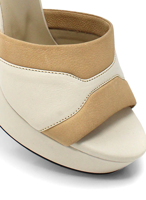 Total elegance and sophistication: our Alais platform. Created in a special selection of delicate leathers that contrast in their textures. Its minimalist and geometric silhouette decorates your foot in an ideal and unique way.