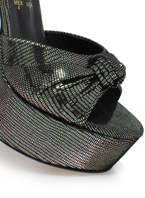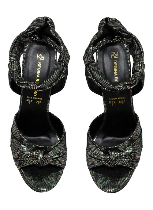 At Regina Romero we created a platform sandal for women that plays with the versatility and beauty of the skin. A beautifully draped knot adorns the front of our platform, and the lace on it makes it the most comfortable to walk on, giving a twist to the classic platform sandal.