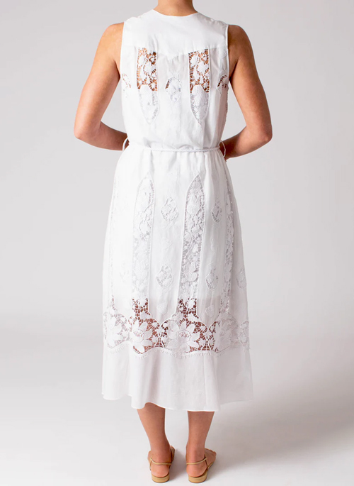 We've updated your favorite, four-pocket, guayabera-inspired Alexia dress with windows of pretty lotus-flower embroidery to make it even more darling than before. Button it up over bare skin — add the removable slip, if you like — tie the sash belt, and you're ready for an island adventure. The crisp, clean white is an instant classic.
