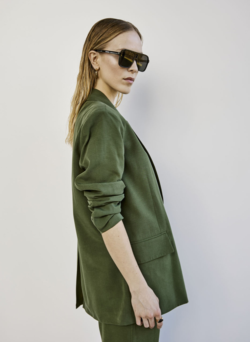 Stylish tailored blazer, made in the finest Lyocel linen mix, in a slightly oversized silhouette. The blazer is in a classic design, with a single button fastening, lapel collar, and two flap pockets. At StyleStore.com we believe in the small luxury wardrobe, composed of the best materials, in versatile silhouettes that you can wear season after season, all available at prices that make sense. We recommend choosing your usual size with the Ruby Blazer. The model is 176 cm and is shown here in size. S.
