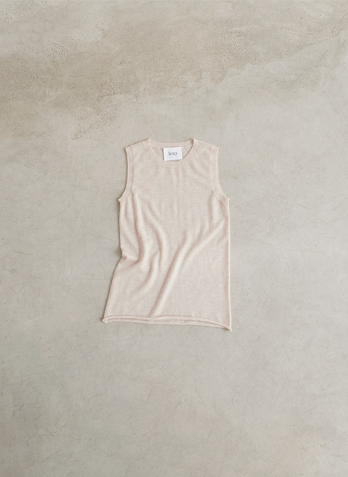 Sleeveless top knitted in impeccable soft extra fine cashmere from Inner Mongolia. Round neck with rolled edges. Fitted across the shoulders. Stretch fit for a second skin feel.