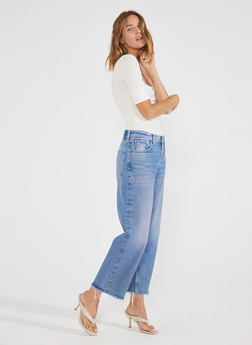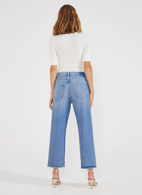 Low slung and easy, this style is inspired by 90’s loose fit jeans. Fit is roomy but never bulky, sitting comfortably on the hip with menswear sized pockets and a cropped hem. This uniquely low-impact wash incorporates a bright pink natural dye on a light, low-dip denim.