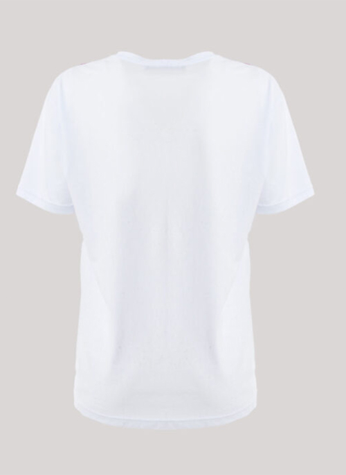 Personalized t-shirt in fine white cotton jersey with graphic design print. Embellished with contrasting fashion piping detail on shoulders and hips.