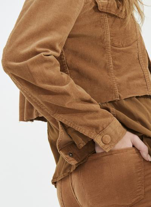 Take a look at this tempting version of a sassy yet classy Andrea Caramel Corduroy jacket. Featuring a medium-weight fabric, it is styled into a relaxed fit with a cropped length. It has a collared neckline with a button-down front and long sleeves. Team it up with matching pants and get the attention you deserve.