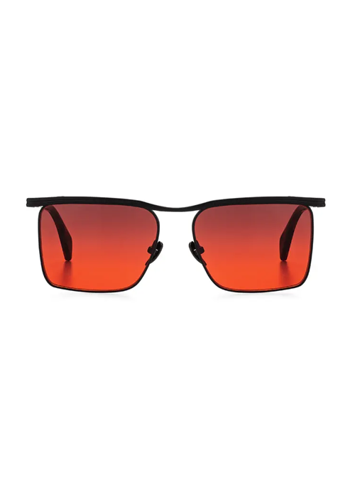 Taking notes from the navigator frames of the 80s, this square metal shape is crafted with a wraparound bar for extra impact. Finessed with custom metal details, ceramic nose pads and out signature temple tip. A very limited edition color with only 25 pieces made of our signature red gradient lenses.