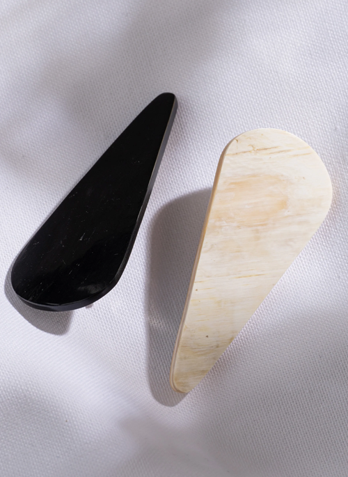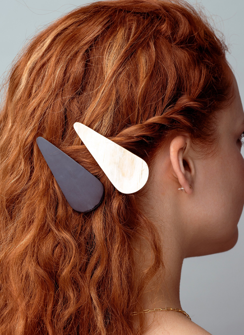 Jazz up your look with our unique Ankole hair clips. This set of two geometric hair clips is lightweight, stylish and includes both a dark and light colored clip.
