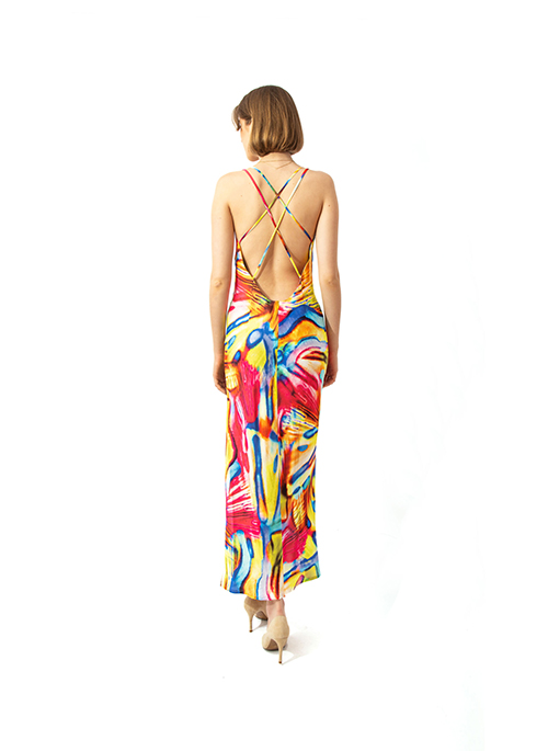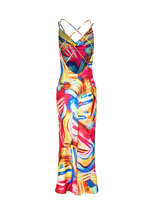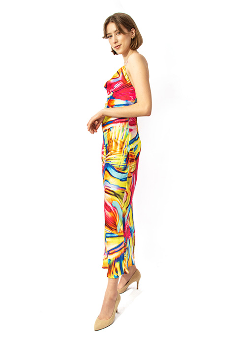 Cowl back midi dress in a silk touch fabric with a luxurious sheen