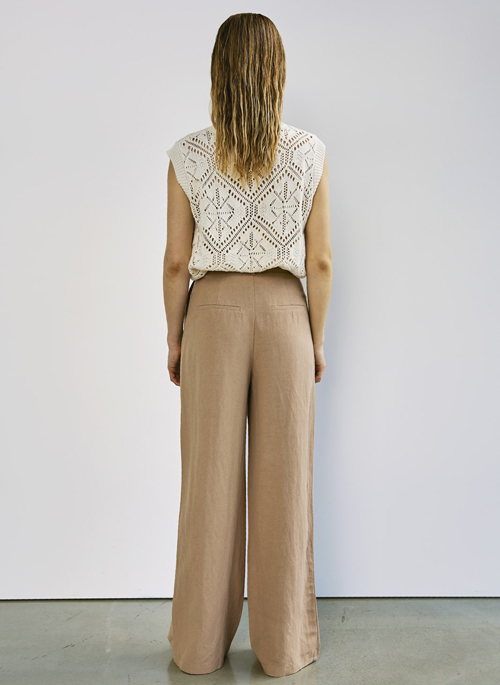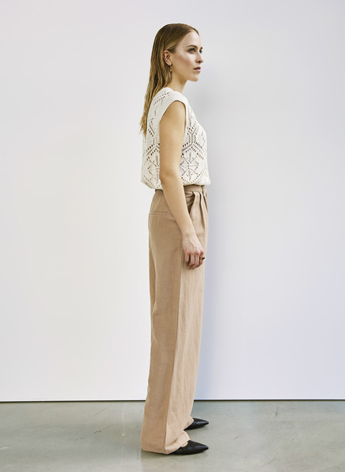 Lovely tailored pants with a high waist and wide legs. The pants are designed with the most refined details, including pleats on the front piece, which together with the button closure detail and slanted pockets, give the pants an elegant and classic look. You get a pair of pants that are on-trend and super versatile. At StyleStore.com, we believe in the luxury wardrobe staple, composed of the best materials, in versatile silhouettes that you can wear season after season, all available at prices that that make sense. The model is 173 cm and wearing a size small. The pants are true to size, and we recommend you choose the size you would normally choose in pants. #Betterwardrobe