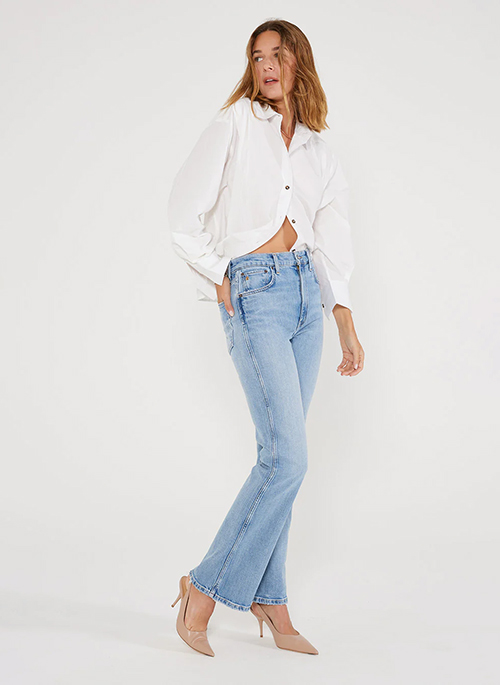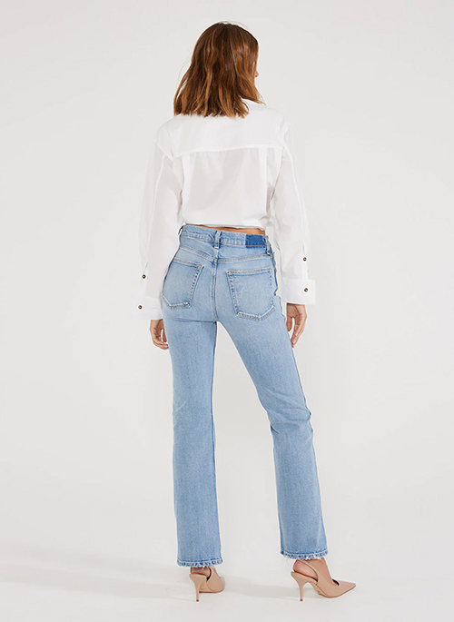A modern flare with a slim fit and a gradual opening that finishes just past the ankle. A soft organic comfort stretch denim is finished in a clean light wash with caballo seaming details.
