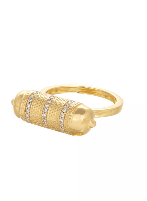 The Aravalli mountain range is the oldest mountain range in the world and a part of the very fabric of India. Our Aravalli ring seems to have captured that history in its beautifully crafted closed cylinder. The elegant engraving and highly polished gold-plate, are graced with a wealth of sparkling white, blue, red or green cubic zirconia gemstones.