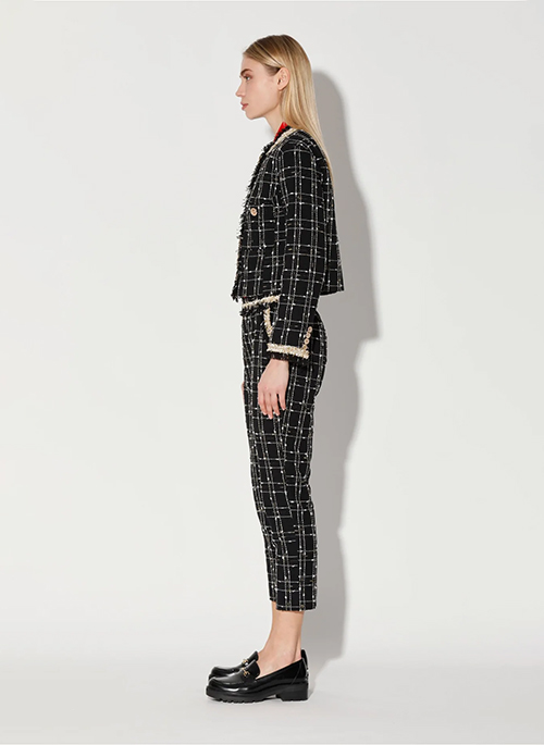 The Arya Jacket adds a metallic trim update to the boxy jacket staple. Wear with the Ace Pant for an elevated set ensemble.