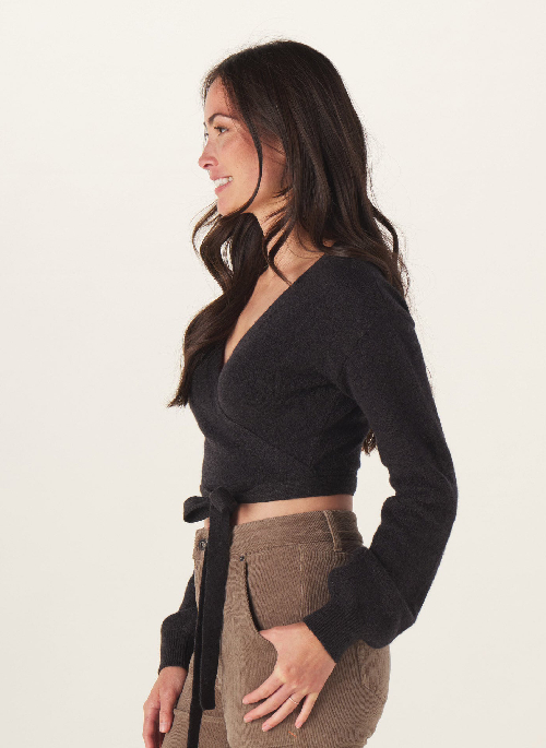 Soft, lightweight, and oh-so-sexy, the Ashley Wrap Sweater is a self-tying sweater that hits the natural waist. This wrap sweater is the perfect mix of sexy and comfortable, with roomy bell sleeves and a soft knit fabric that is as cozy as it is flattering.Details: