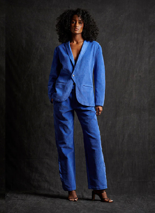 A sleek, lightweight jacket with plenty of texture. The heritage-inspired wide-whale corduroy cotton has a soft feel and a dynamic range of hues from blue to forest green. Finished with an inlaid wire at the collar for personalization, it pairs best with matching trousers.
