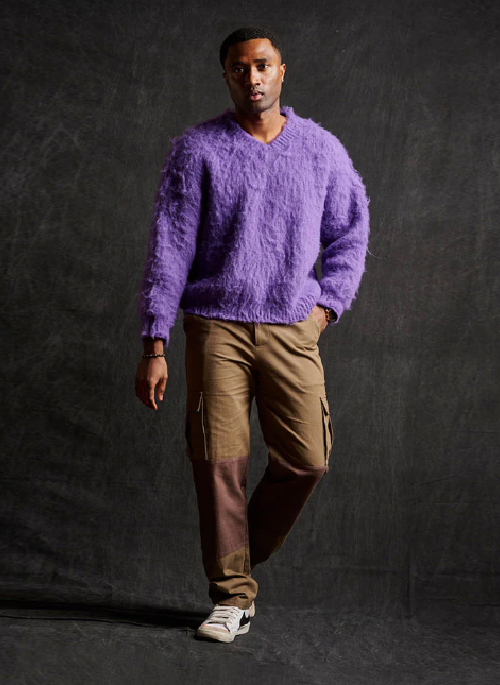 Crafted from fluffy merino wool with a rich texture. This fun piece is detailed with a ribbed neckline, cuffs, and hem and is sure to keep you warm. Cut to a relaxed fit with a hip length.