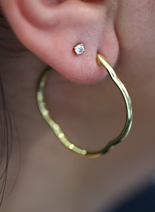 Our signature Astra design, created as a hoop earring in solid 18kt yellow gold.