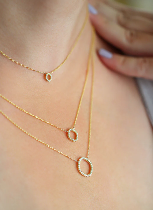 Created from the signature Astra design. Handset in 18k yellow gold with 0.10ctw diamond. Includes a 16” rolo link 18k yellow gold chain. Pendant is approximately 5mm diameter.