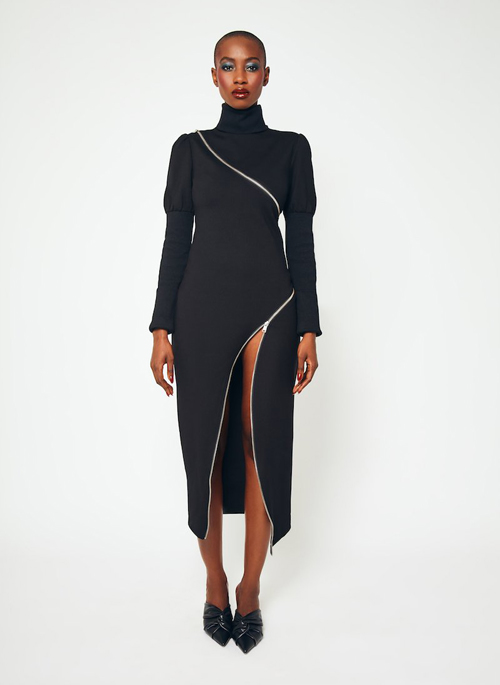 aŠady Asymmetrical Bodycon Zipper Dress. Elevate your everyday basic black dress with this daring piece.