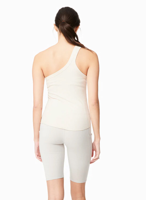 This Asymmetrical Rib Tank is the perfect addition to any wardrobe. Crafted with a one shoulder design and built in shelf bra, it ensures comfort, style, and support. Perfect for any occasion. The purchase includes a pair of same-color tanks.