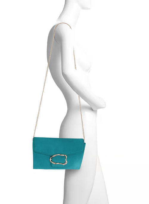 Aubrey Satin Envelope with Organic Shape Buckle Color: Turquoise