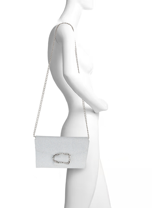 Aubrey Satin Envelope with Organic Shape Buckle Color: Silver