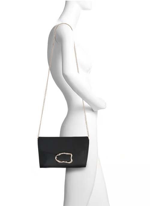 Aubrey Satin Envelope with Organic Shape Buckle Color: Black