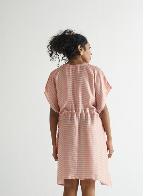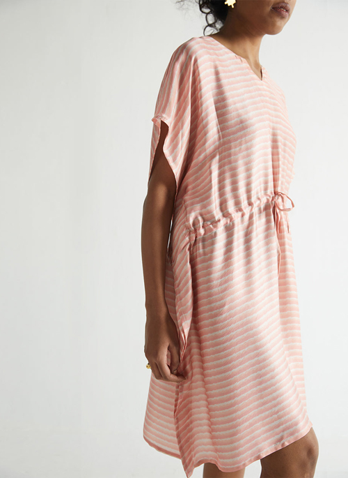 Fashionable and fluid, this drawstring kaftan-style dress with a cinched waist is the ultimate style and comfort statement.