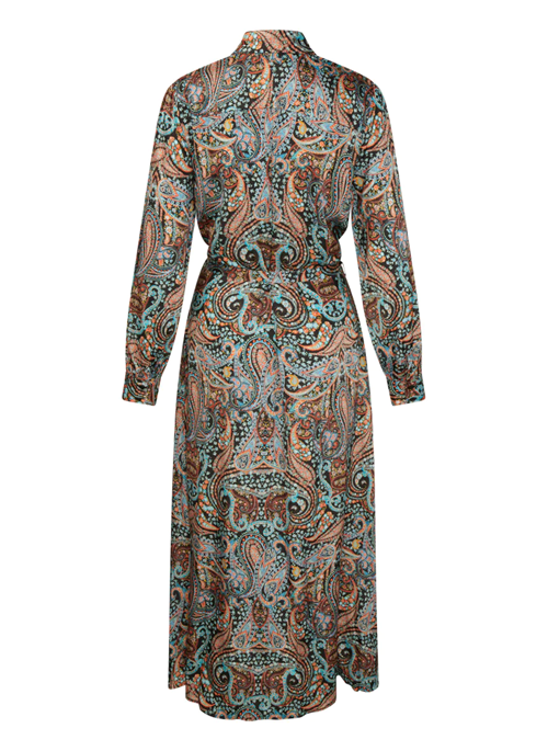 The Aurelia dress is a must-have for any stylish woman. Made from 100% silk Crep de Chine, it is soft, comfortable and perfect for both a night out or the office. The long button-front design, classic collar and optional belt make it versatile and sophisticated. Elevate your wardrobe with this elegant and timeless piece.