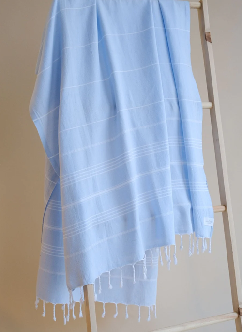The modern standard in stylish bath and beach towels has been used for centuries in Turkish baths. Our signature Turkish Baby Blue towel isn’t just gorgeous—it’s also functional and versatile. Lightweight and ultra-absorbent, it’s engineered with fast-drying fibers. Whether you’re done soaking in the tub or stepping out of the sea, you’ll be reaching for this premium staple again and again.