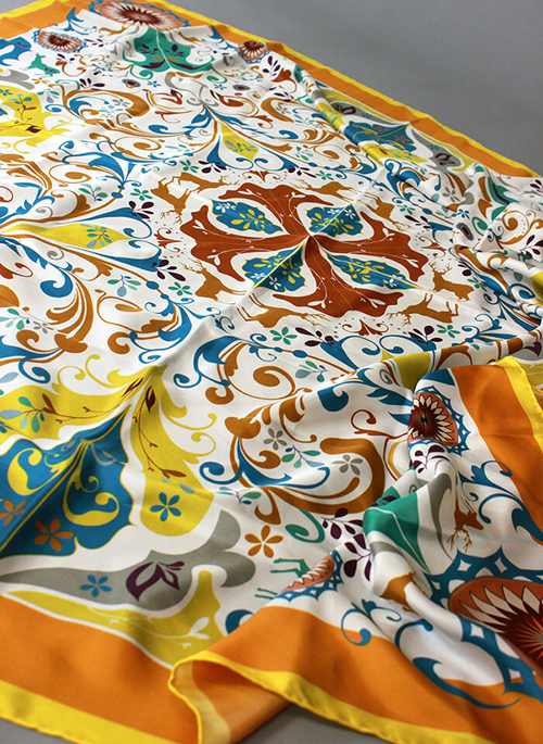 This printed floral scarf is one of our signature designs. Perfect for transitioning into Autumn. Hand drawn, hand rolled. Be cool, be warm.