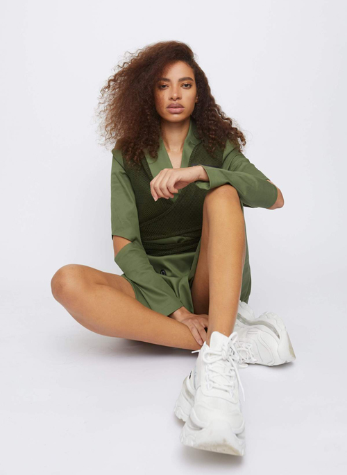 The Whyte Studio ‘BACK UP’ blazer dress is a limited edition piece. Featuring double breast tailored style and a sports mesh wrap for a contoured silhouette. It is a perfect addition to your statement wardrobe.
